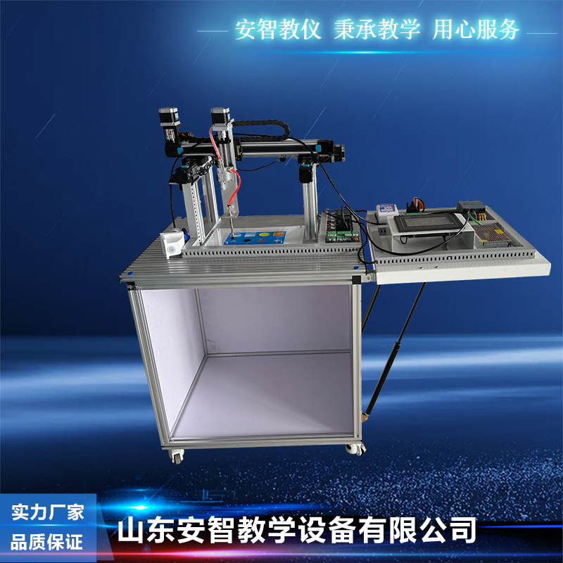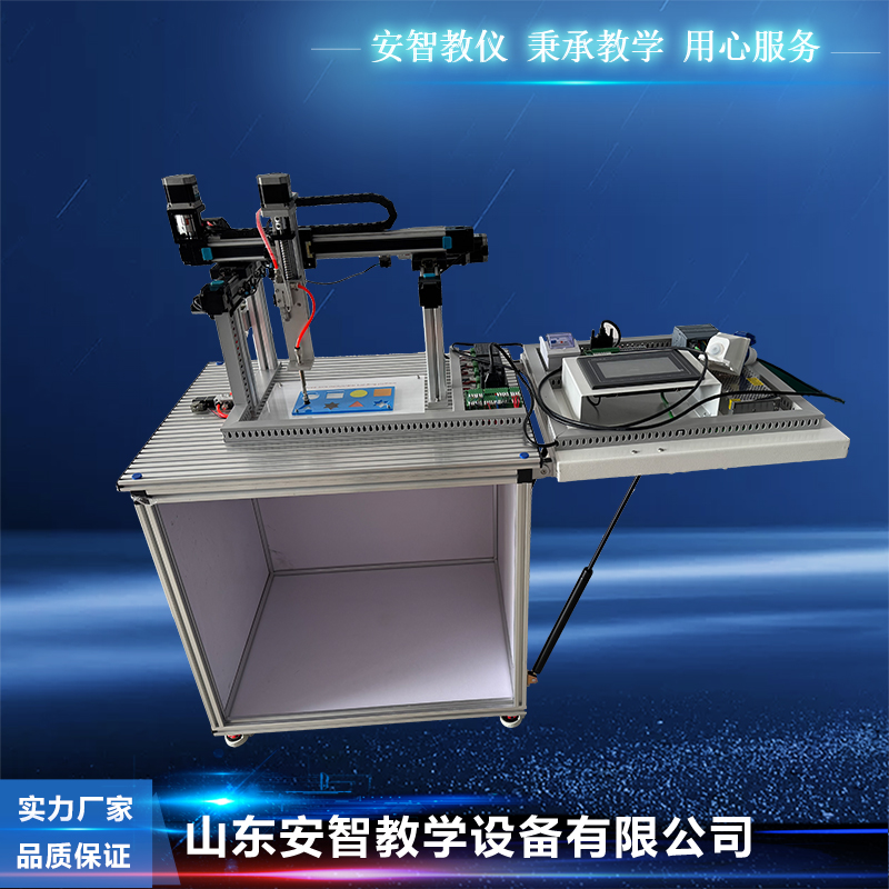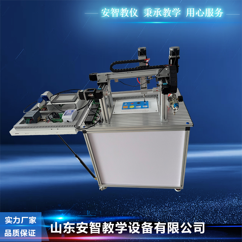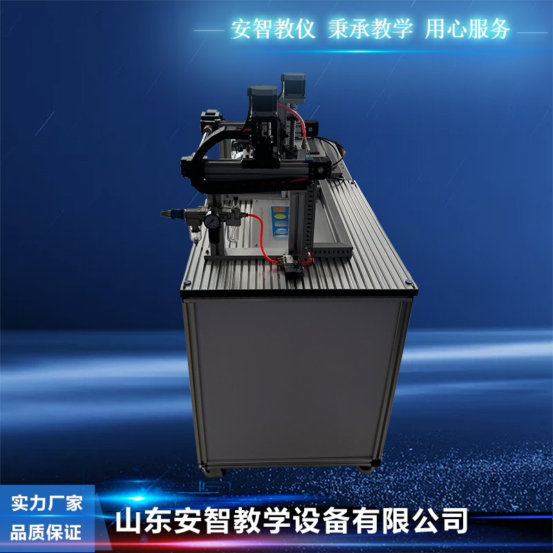 該裝置是將PLC控制技術、位置控制技術、步進電機驅(qū)動技術、傳感器檢測技術、觸摸屏設計等有機結(jié)合成一種的教學儀器設備,適用于大中專院校學生畢業(yè)設計、課程設計、實習實驗等,也可作為教師研究開發(fā)等實物實訓。在實訓過程中,主要完成下面兩方面的訓練: